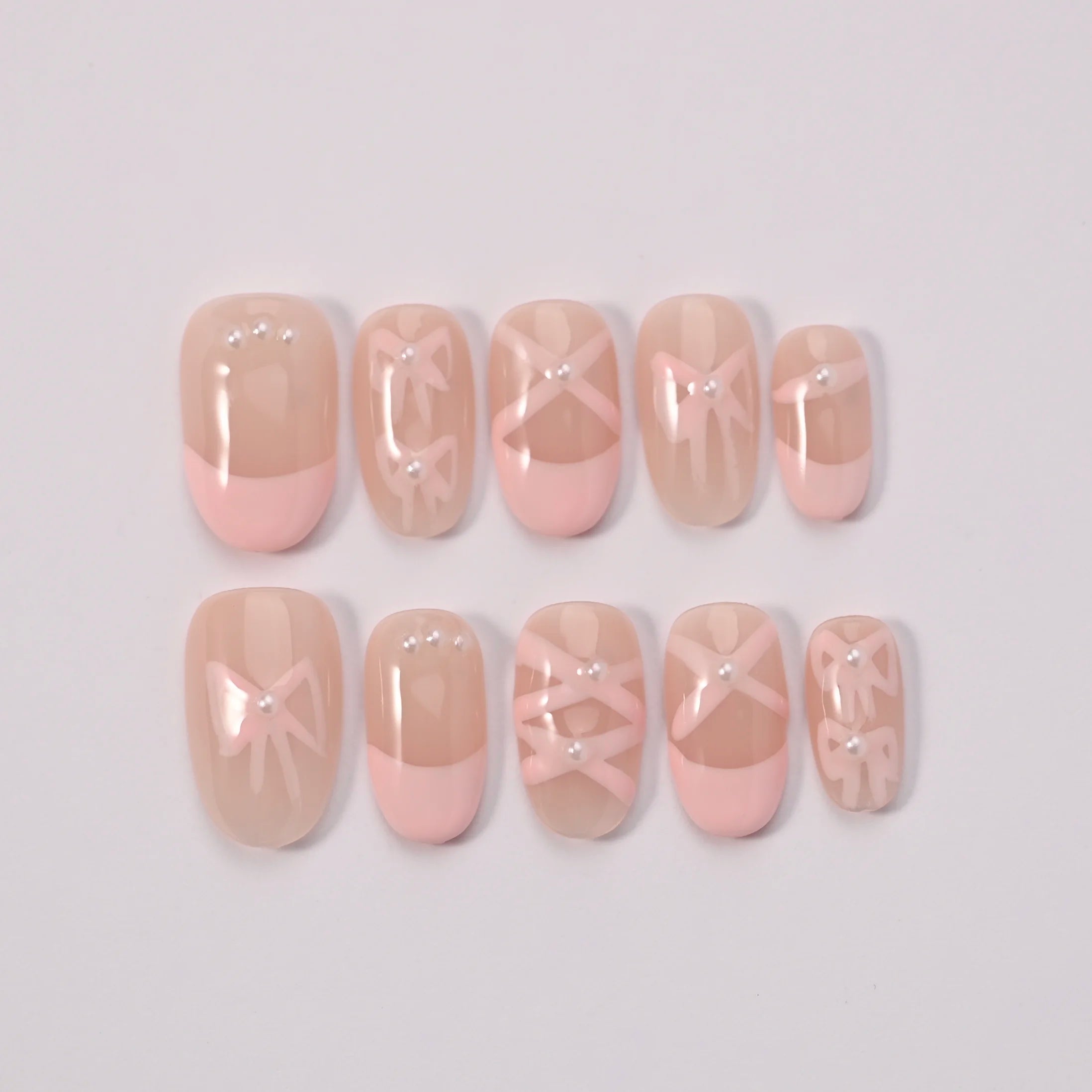 "Grazia di Ballerina" by Blubella Nails is inspired by the elegance of classical dance, with symbols that recall the ribbons of pointe shoes and delicate floral motifs on a soft pink base.